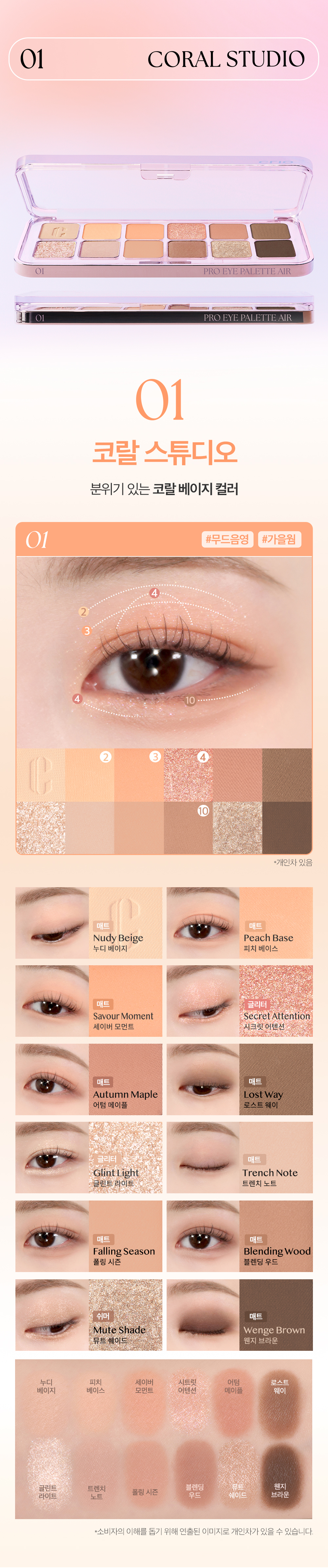 | 01 코랄 스튜디오 1탤크,마이카 (CI 77019),나일론-12,티타늄디옥사이드 (CI 77891),보론나이트라이드,옥틸도데실스테아로일스테아레이트,페닐트라이메티콘,실리카,마그네슘미리스테이트,황색산화철 (CI 77492),미네랄오일,메틸프로판다이올,다이메티콘,다이메티콘올스테아레이트,마그네슘스테아레이트,프로판다이올,트라이에톡시카프릴릴실레인,하이드로제네이티드레시틴,라우로일라이신,알루미늄하이드록사이드,말토덱스트린,적색산화철 (CI 77491),울트라마린 (CI 77007),카민 (CI 75470),흑색산화철 (CI 77499) 2탤크,마이카 (CI 77019),티타늄디옥사이드 (CI 77891),실리카,보론나이트라이드,나일론-12,옥틸도데실스테아로일스테아레이트,페닐트라이메티콘,미네랄오일,메틸프로판다이올,다이메티콘,다이메티콘올스테아레이트,마그네슘미리스테이트,마그네슘스테아레이트,프로판다이올,하이드로제네이티드레시틴,라우로일라이신,트라이에톡시카프릴릴실레인,알루미늄하이드록사이드,말토덱스트린,황색4호 (CI 19140),황색산화철 (CI 77492),황색5호 (CI 15985),적색226호 (CI 73360),적색산화철 (CI 77491),흑색산화철 (CI 77499),카민 (CI 75470) 3탤크,마이카 (CI 77019),보론나이트라이드,티타늄디옥사이드 (CI 77891),실리카,옥틸도데실스테아로일스테아레이트,페닐트라이메티콘,나일론-12,황색4호 (CI 19140),카민 (CI 75470),마카다미아씨오일,마그네슘미리스테이트,마그네슘스테아레이트,메틸프로판다이올,다이메티콘,다이메티콘올스테아레이트,프로판다이올,라우로일라이신,하이드로제네이티드레시틴,트라이에톡시카프릴릴실레인,알루미늄하이드록사이드,메티콘,말토덱스트린,적색산화철 (CI 77491),황색산화철 (CI 77492),적색226호 (CI 73360),흑색산화철 (CI 77499),울트라마린 (CI 77007), 4칼슘알루미늄보로실리케이트,탤크,마이카 (CI 77019),네오펜틸글라이콜다이에틸헥사노에이트,티타늄디옥사이드 (CI 77891),페닐트라이메티콘,보론나이트라이드,다이펜타에리스리틸헥사하이드록시스테아레이트/헥사스테아레이트/헥사로지네이트,실리카,나일론-12,다이아이소스테아릴말레이트,아이소스테아릴네오펜타노에이트,옥틸도데실스테아로일스테아레이트,마그네슘미리스테이트,마그네슘스테아레이트,메틸프로판다이올,폴리부텐,프로판다이올,다이메티콘,트라이에톡시카프릴릴실레인,라우로일라이신,말토덱스트린,카올린,틴옥사이드 (CI 77861),적색산화철 (CI 77491),황색4호 (CI 19140),카민 (CI 75470),황색산화철 (CI 77492),망가니즈바이올렛 (CI 77742),흑색산화철 (CI 77499),울트라마린 (CI 77007), 5탤크,마이카 (CI 77019),실리카,보론나이트라이드,나일론-12,옥틸도데실스테아로일스테아레이트,페닐트라이메티콘,황색산화철 (CI 77492),적색산화철 (CI 77491),미네랄오일,메틸프로판다이올,다이메티콘,다이메티콘올스테아레이트,마그네슘미리스테이트,마그네슘스테아레이트,프로판다이올,하이드로제네이티드레시틴,라우로일라이신,트라이에톡시카프릴릴실레인,카올린,알루미늄하이드록사이드,말토덱스트린,티타늄디옥사이드 (CI 77891),망가니즈바이올렛 (CI 77742),흑색산화철 (CI 77499),카민 (CI 75470),황색5호 (CI 15985),적색226호 (CI 73360),황색4호 (CI 19140),울트라마린 (CI 77007) 6탤크,마이카 (CI 77019),실리카,흑색산화철 (CI 77499),적색산화철 (CI 77491),황색산화철 (CI 77492),망가니즈바이올렛 (CI 77742),옥틸도데칸올,옥틸도데실스테아로일스테아레이트,페닐트라이메티콘,마그네슘미리스테이트,마카다미아씨오일,메틸프로판다이올,다이메티콘올스테아레이트,다이메티콘,다이펜타에리스리틸헥사하이드록시스테아레이트/헥사스테아레이트/헥사로지네이트,다이아이소스테아릴말레이트,마그네슘스테아레이트,프로판다이올,트라이에톡시카프릴릴실레인,하이드로제네이티드레시틴,카올린,말토덱스트린,울트라마린 (CI 77007),카민 (CI 75470) 7칼슘티타늄보로실리케이트,티타늄디옥사이드 (CI 77891),칼슘소듐보로실리케이트,다이페닐실록시페닐트라이메티콘,비스-다이글리세릴폴리아실아디페이트-2,비스-베헤닐/아이소스테아릴/피토스테릴다이머다이리놀레일다이머다이리놀리에이트,피토스테릴/이소스테아릴/세틸/스테아릴/베헤닐다이머디리놀리에이트,폴리부틸렌테레프탈레이트,합성플루오르플로고파이트,다이아이소스테아릴말레이트,폴리글리세릴-2트라이아이소스테아레이트,다이페닐다이메티콘/비닐다이페닐다이메티콘/실세스퀴옥세인크로스폴리머,마그네슘스테아레이트,메틸프로판다이올,폴리프로필렌,아크릴레이트코폴리머,에틸렌/브이에이코폴리머,프로판다이올,트라이에톡시카프릴릴실레인,틴옥사이드 (CI 77861),마이카 (CI 77019),적색산화철 (CI 77491),카민 (CI 75470) 8탤크,마이카 (CI 77019),실리카,티타늄디옥사이드 (CI 77891),보론나이트라이드,나일론-12,옥틸도데실스테아로일스테아레이트,페닐트라이메티콘,합성플루오르플로고파이트,미네랄오일,메틸프로판다이올,다이메티콘,다이메티콘올스테아레이트,마그네슘미리스테이트,마그네슘스테아레이트,프로판다이올,하이드로제네이티드레시틴,라우로일라이신,트라이에톡시카프릴릴실레인,알루미늄하이드록사이드,황색산화철 (CI