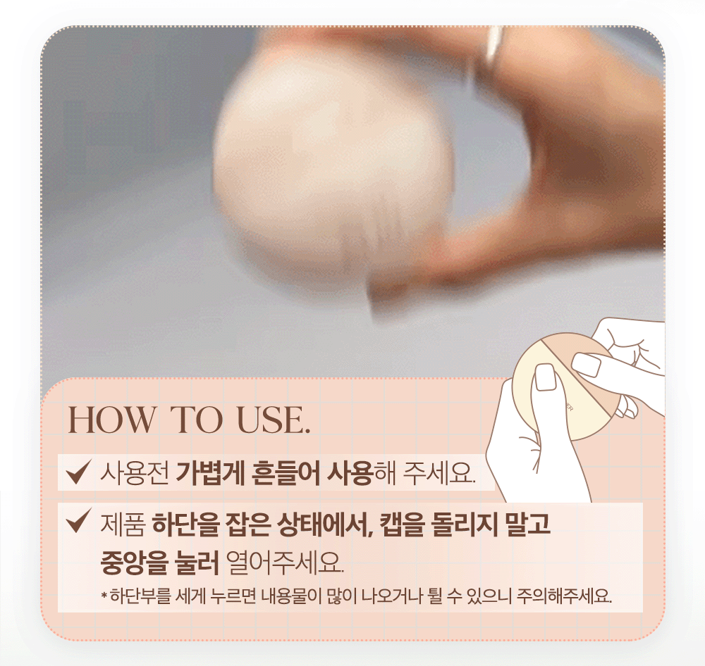 | 1호 밀크베이지 정제수, 다이메티콘, 티타늄디옥사이드, 카프릴릭/카프릭트라이글리세라이드, 부틸옥틸살리실레이트, 아이소노닐아이소노나노에이트, 메틸트라이메티콘, 징크옥사이드, 변성알코올, 세틸피이지/피피지-10/1다이메티콘, 글리세린, 나이아신아마이드, 비닐다이메티콘/메티콘실세스퀴옥세인크로스폴리머, 라우릴피이지-10트리스(트라이메틸실록시)실릴에틸다이메티콘, 다이스테아다이모늄헥토라이트, 마그네슘설페이트, 다이프로필렌글라이콜, 펜틸렌글라이콜, 다이메티콘/비닐다이메티콘크로스폴리머, 폴리글리세릴-4아이소스테아레이트, 폴리메틸메타크릴레이트, 폴리하이드록시스테아릭애씨드, 황색산화철, 폴리메틸실세스퀴옥세인, 팔미틱애씨드, 합성플루오르플로고파이트, 알루미나, 트라이에톡시카프릴릴실레인, 카프릴릴글라이콜, 글리세릴카프릴레이트, 스테아릭애씨드, 알루미늄하이드록사이드, 향료, 에틸헥실글리세린, 적색산화철, 아데노신, 흑색산화철, 미리스틱애씨드, 판테놀, 토코페롤, 부틸렌글라이콜, 펜타에리스리틸테트라-다이-t-부틸하이드록시하이드로신나메이트, 1,2-헥산다이올, 소듐하이알루로네이트, 소듐디엔에이, 하이드록시프로필트라이모늄하이알루로네이트, 소듐아세틸레이티드하이알루로네이트, 하이드롤라이즈드하이알루로닉애씨드, 아세틸헥사펩타이드-8, 카퍼트라이펩타이드-1, 팔미토일테트라펩타이드-7, 노나펩타이드-1, 트라이펩타이드-1, 팔미토일펜타펩타이드-4, 팔미토일트라이펩타이드-1, 헥사펩타이드-9, 하이알루로닉애씨드, 소듐하이알루로네이트크로스폴리머, 포타슘하이알루로네이트 2호 웜베이지 정제수, 다이메티콘, 티타늄디옥사이드, 카프릴릭/카프릭트라이글리세라이드, 부틸옥틸살리실레이트, 아이소노닐아이소노나노에이트, 메틸트라이메티콘, 징크옥사이드, 변성알코올, 세틸피이지/피피지-10/1다이메티콘, 글리세린, 나이아신아마이드, 비닐다이메티콘/메티콘실세스퀴옥세인크로스폴리머, 라우릴피이지-10트리스(트라이메틸실록시)실릴에틸다이메티콘, 다이스테아다이모늄헥토라이트, 마그네슘설페이트, 황색산화철, 다이프로필렌글라이콜, 펜틸렌글라이콜, 다이메티콘/비닐다이메티콘크로스폴리머, 폴리글리세릴-4아이소스테아레이트, 폴리하이드록시스테아릭애씨드, 폴리메틸메타크릴레이트, 폴리메틸실세스퀴옥세인, 팔미틱애씨드, 합성플루오르플로고파이트, 트라이에톡시카프릴릴실레인, 알루미나, 카프릴릴글라이콜, 글리세릴카프릴레이트, 스테아릭애씨드, 적색산화철, 흑색산화철, 알루미늄하이드록사이드, 향료, 에틸헥실글리세린, 아데노신, 미리스틱애씨드, 판테놀, 토코페롤, 부틸렌글라이콜, 펜타에리스리틸테트라-다이-t-부틸하이드록시하이드로신나메이트, 1,2-헥산다이올, 소듐하이알루로네이트, 소듐디엔에이, 하이드록시프로필트라이모늄하이알루로네이트, 소듐아세틸레이티드하이알루로네이트, 하이드롤라이즈드하이알루로닉애씨드, 아세틸헥사펩타이드-8, 카퍼트라이펩타이드-1, 팔미토일테트라펩타이드-7, 노나펩타이드-1, 트라이펩타이드-1, 팔미토일펜타펩타이드-4, 팔미토일트라이펩타이드-1, 헥사펩타이드-9, 하이알루로닉애씨드, 소듐하이알루로네이트크로스폴리머, 포타슘하이알루로네이트 3호 쿨베이지 정제수, 다이메티콘, 티타늄디옥사이드, 카프릴릭/카프릭트라이글리세라이드, 부틸옥틸살리실레이트, 아이소노닐아이소노나노에이트, 메틸트라이메티콘, 징크옥사이드, 변성알코올, 세틸피이지/피피지-10/1다이메티콘, 글리세린, 나이아신아마이드, 비닐다이메티콘/메티콘실세스퀴옥세인크로스폴리머, 라우릴피이지-10트리스(트라이메틸실록시)실릴에틸다이메티콘, 다이스테아다이모늄헥토라이트, 마그네슘설페이트, 다이프로필렌글라이콜, 펜틸렌글라이콜, 황색산화철, 다이메티콘/비닐다이메티콘크로스폴리머, 폴리글리세릴-4아이소스테아레이트, 폴리하이드록시스테아릭애씨드, 폴리메틸메타크릴레이트, 폴리메틸실세스퀴옥세인, 팔미틱애씨드, 트라이에톡시카프릴릴실레인, 알루미나, 카프릴릴글라이콜, 글리세릴카프릴레이트, 스테아릭애씨드, 적색산화철, 합성플루오르플로고파이트, 흑색산화철, 알루미늄하이드록사이드, 향료, 에틸헥실글리세린, 아데노신, 미리스틱애씨드, 판테놀, 토코페롤, 부틸렌글라이콜, 펜타에리스리틸테트라-다이-t-부틸하이드록시하이드로신나메이트, 1,2-헥산다이올, 소듐하이알루로네이트, 소듐디엔에이, 하이드록시프로필트라이모늄하이알루로네이트, 소듐아세틸레이티드하이알루로네이트, 하이드롤라이즈드하이알루로닉애씨드, 아세틸헥사펩타이드-8, 카퍼트라이펩타이드-1, 팔미토일테트라펩타이드-7, 노나펩타이드-1, 트라이펩타이드-1, 팔미토일펜타펩타이드-4, 팔미토일트라이펩타이드-1, 헥사펩타이드-9, 하이알루로닉애씨드, 소듐하이알루로네이트크로스폴리머, 포타슘하이알루로네이트 |