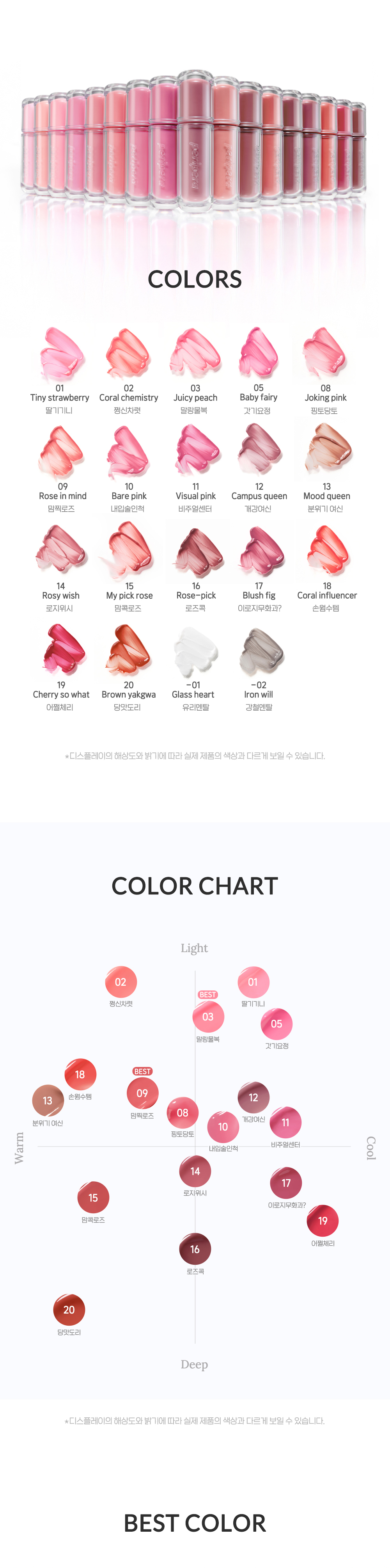| [-001 유리멘탈] 정제수,다이아이소스테아릴말레이트,하이드로제네이티드폴리아이소부텐,카프릴릴트라이메티콘,트라이메틸실록시페닐다이메티콘,비스-다이글리세릴폴리아실아디페이트-2,세틸피이지/피피지-10/1다이메티콘,다이페닐실록시페닐트라이메티콘,다이프로필렌글라이콜,폴리솔베이트60,펜틸렌글라이콜,글리세린,폴리글리세릴-4아이소스테아레이트,페녹시에탄올,하이드록시에틸아크릴레이트/소듐아크릴로일다이메틸타우레이트코폴리머,1,2-헥산다이올,세테아레스-20,스쿠알란,스테비오사이드,티타늄디옥사이드 (CI 77891),소듐다이라우미도글루타미드라이신,향료,에틸헥실글리세린,트라이소듐에틸렌다이아민다이석시네이트,솔비탄아이소스테아레이트,암모늄폴리아크릴레이트,알루미늄하이드록사이드,부틸렌글라이콜,토코페롤 [-002 강철멘탈] 정제수,다이아이소스테아릴말레이트,하이드로제네이티드폴리아이소부텐,카프릴릴트라이메티콘,트라이메틸실록시페닐다이메티콘,비스-다이글리세릴폴리아실아디페이트-2,세틸피이지/피피지-10/1다이메티콘,다이페닐실록시페닐트라이메티콘,다이프로필렌글라이콜,폴리솔베이트60,펜틸렌글라이콜,글리세린,폴리글리세릴-4아이소스테아레이트,페녹시에탄올,하이드록시에틸아크릴레이트/소듐아크릴로일다이메틸타우레이트코폴리머,1,2-헥산다이올,세테아레스-20,스쿠알란,스테비오사이드,티타늄디옥사이드 (CI 77891),소듐다이라우미도글루타미드라이신,향료,흑색산화철 (CI 77499),에틸헥실글리세린,트라이소듐에틸렌다이아민다이석시네이트,솔비탄아이소스테아레이트,황색4호 (CI 19140),암모늄폴리아크릴레이트,알루미늄하이드록사이드,적색227호 (CI 17200),황색5호 (CI 15985),청색1호 (CI 42090),부틸렌글라이콜,토코페롤 [001 딸기기니] 정제수,다이아이소스테아릴말레이트,하이드로제네이티드폴리아이소부텐,카프릴릴트라이메티콘,트라이메틸실록시페닐다이메티콘,비스-다이글리세릴폴리아실아디페이트-2,세틸피이지/피피지-10/1다이메티콘,다이페닐실록시페닐트라이메티콘,다이프로필렌글라이콜,폴리솔베이트60,펜틸렌글라이콜,글리세린,폴리글리세릴-4아이소스테아레이트,페녹시에탄올,하이드록시에틸아크릴레이트/소듐아크릴로일다이메틸타우레이트코폴리머,1,2-헥산다이올,세테아레스-20,스쿠알란,스테비오사이드,티타늄디옥사이드 (CI 77891),소듐다이라우미도글루타미드라이신,향료,에틸헥실글리세린,트라이소듐에틸렌다이아민다이석시네이트,적색104호의(1) (CI 45410),솔비탄아이소스테아레이트,황색4호 (CI 19140),암모늄폴리아크릴레이트,알루미늄하이드록사이드,적색227호 (CI 17200),부틸렌글라이콜,청색1호 (CI 42090),토코페롤 [002 쩡신차렷] 정제수,다이아이소스테아릴말레이트,하이드로제네이티드폴리아이소부텐,카프릴릴트라이메티콘,트라이메틸실록시페닐다이메티콘,비스-다이글리세릴폴리아실아디페이트-2,세틸피이지/피피지-10/1다이메티콘,다이페닐실록시페닐트라이메티콘,다이프로필렌글라이콜,폴리솔베이트60,펜틸렌글라이콜,글리세린,폴리글리세릴-4아이소스테아레이트,페녹시에탄올,하이드록시에틸아크릴레이트/소듐아크릴로일다이메틸타우레이트코폴리머,1,2-헥산다이올,세테아레스-20,티타늄디옥사이드 (CI 77891),스쿠알란,스테비오사이드,소듐다이라우미도글루타미드라이신,향료,에틸헥실글리세린,트라이소듐에틸렌다이아민다이석시네이트,적색227호 (CI 17200),황색5호 (CI 15985),황색4호 (CI 19140),솔비탄아이소스테아레이트,암모늄폴리아크릴레이트,알루미늄하이드록사이드,적색104호의(1) (CI 45410),부틸렌글라이콜,청색1호 (CI 42090),토코페롤 [003 말랑물복] 정제수,다이아이소스테아릴말레이트,하이드로제네이티드폴리아이소부텐,카프릴릴트라이메티콘,트라이메틸실록시페닐다이메티콘,비스-다이글리세릴폴리아실아디페이트-2,세틸피이지/피피지-10/1다이메티콘,다이페닐실록시페닐트라이메티콘,다이프로필렌글라이콜,폴리솔베이트60,펜틸렌글라이콜,글리세린,폴리글리세릴-4아이소스테아레이트,페녹시에탄올,하이드록시에틸아크릴레이트/소듐아크릴로일다이메틸타우레이트코폴리머,1,2-헥산다이올,세테아레스-20,스쿠알란,티타늄디옥사이드 (CI 77891),스테비오사이드,소듐다이라우미도글루타미드라이신,향료,에틸헥실글리세린,트라이소듐에틸렌다이아민다이석시네이트,적색227호 (CI 17200),황색4호 (CI 19140),솔비탄아이소스테아레이트,암모늄폴리아크릴레이트,알루미늄하이드록사이드,적색104호의(1) (CI 45410),황색5호 (CI 15985),부틸렌글라이콜,청색1호 (CI 42090),토코페롤 [005 갓기요정] 정제수,다이아이소스테아릴말레이트,하이드로제네이티드폴리아이소부텐,카프릴릴트라이메티콘,트라이메틸실록시페닐다이메티콘,비스-다이글리세릴폴리아실아디페이트-2,세틸피이지/피피지-10/1다이메티콘,다이페닐실록시페닐트라이메티콘,다이프로필렌글라이콜,폴리솔베이트60,펜틸렌글라이콜,글리세린,폴리글리세릴-4아이소스테아레이트,페녹시에탄올,하이드록시에틸아크릴레이트/소듐아크릴로일다이메틸타우레이트코폴리머,1,2-헥산다