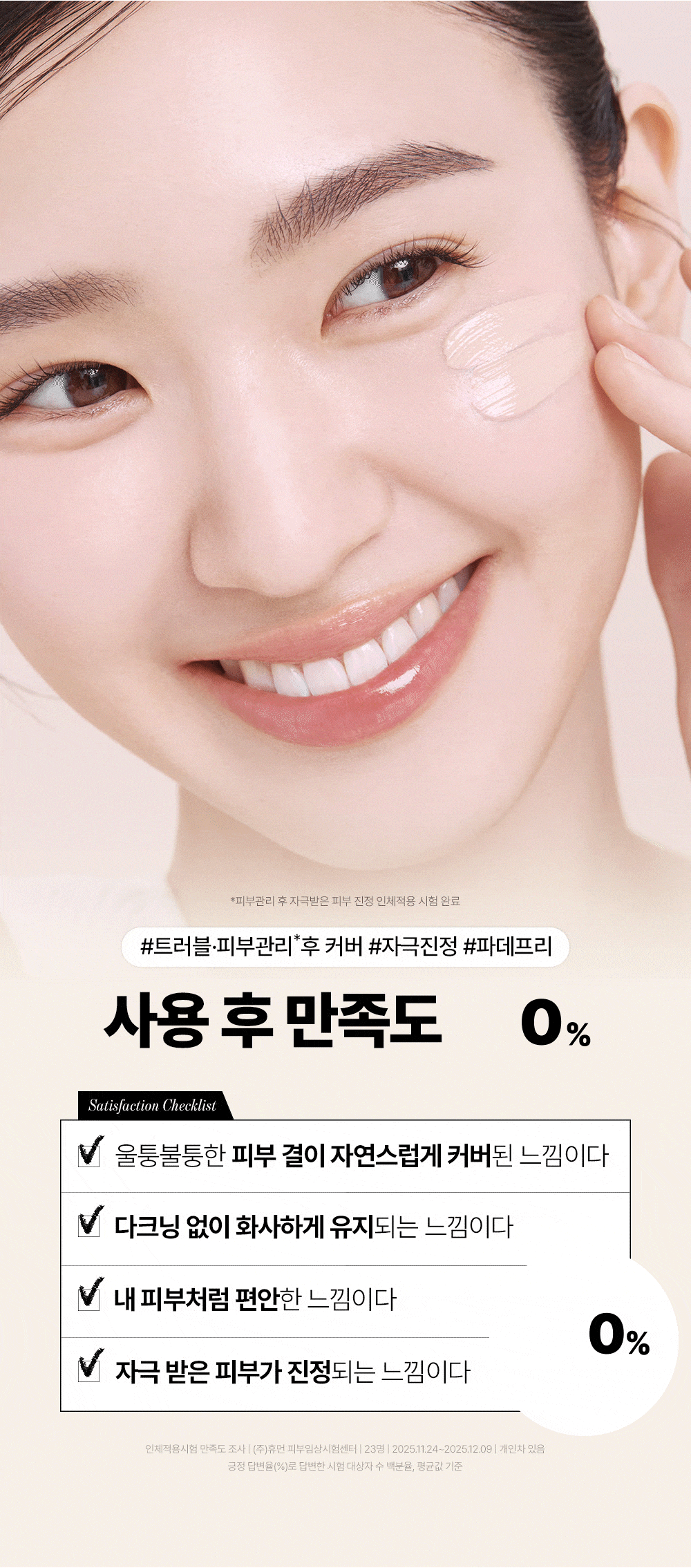 | 제수,티타늄디옥사이드,다이메티콘,부틸렌글라이콜,페닐트라이메티콘,C12-15알킬벤조에이트,다이페닐실록시페닐트라이메티콘,라우릴피이지-10트리스(트라이메틸실록시)실릴에틸다이메티콘,비스-다이글리세릴폴리아실아디페이트-2,트라이실록세인,글리세린,나이아신아마이드,피이지-10다이메티콘,마그네슘설페이트,황색산화철,다이스테아다이모늄헥토라이트,알루미늄하이드록사이드,1,2-헥산다이올,바륨설페이트,바바수씨오일,실리카,다이메티콘크로스폴리머,스테아릭애씨드,트라이에톡시카프릴릴실레인,적색산화철,폴리하이드록시스테아릭애씨드,카프릴릭/카프릭트라이글리세라이드,흑색산화철,트라이에틸시트레이트,약모밀추출물,에틸헥실글리세린,카프릴릴글라이콜,토코페릴아세테이트,잔탄검,트라이소듐에틸렌다이아민다이석시네이트,아이소스테아릭애씨드,아데노신,레시틴,폴리글리세릴-3폴리리시놀리에이트,징크하이드롤라이즈드하이알루로네이트,칼라민,알로에베라잎추출물,참마뿌리추출물,다시마추출물,당느릅나무뿌리추출물,제비꽃꽃추출물,폴리글리세릴-3폴리다이메틸실록시에틸다이메티콘,소듐디엔에이,토코페롤,코직애씨드,판테놀,다이메틸실란올하이알루로네이트,하이드롤라이즈드하이알루로닉애씨드,하이드롤라이즈드소듐하이알루로네이트,하이알루로닉애씨드,소듐하이알루로네이트,하이드록시프로필트라이모늄하이알루로네이트,소듐하이알루로네이트크로스폴리머,소듐하이알루로네이트다이메틸실란올,소듐아세틸레이티드하이알루로네이트 |