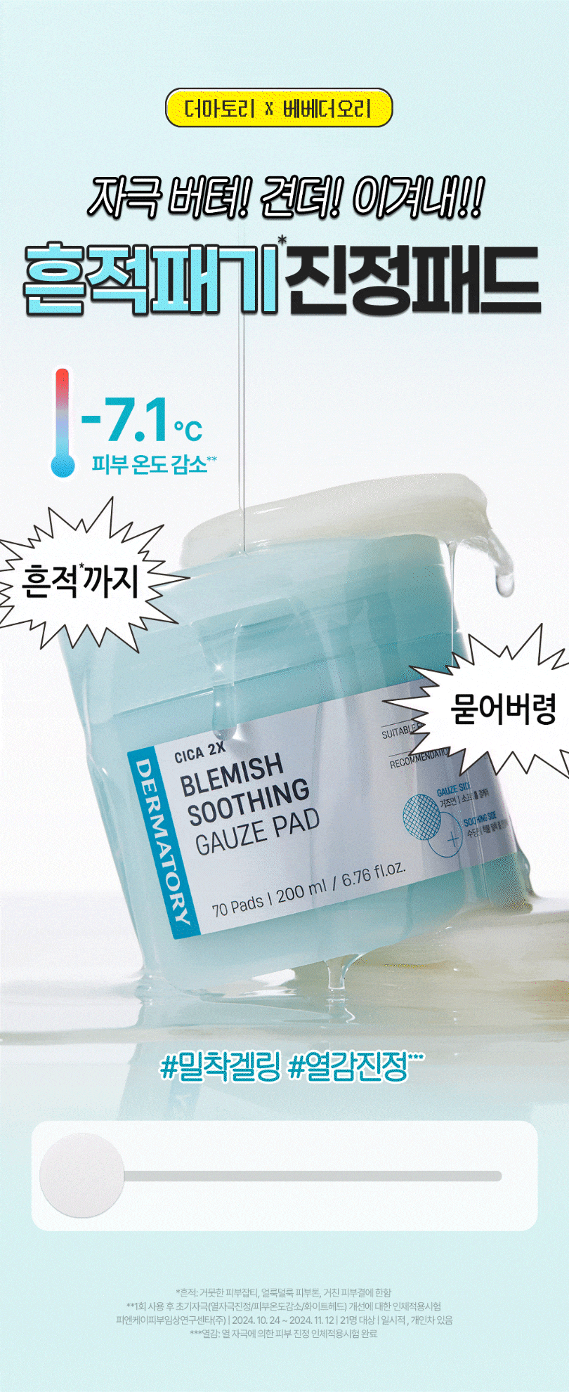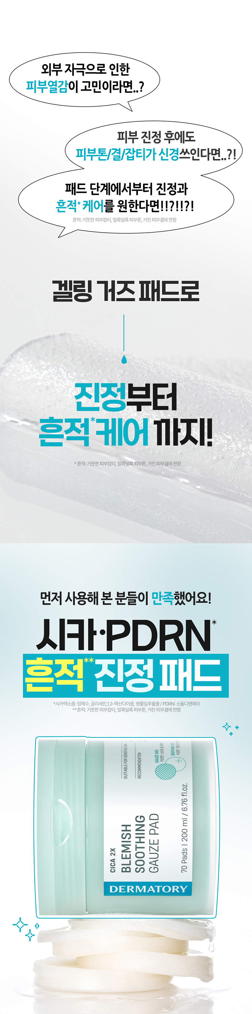 | 거즈패드 정제수, 다이프로필렌글라이콜, 글리세린, 나이아신아마이드, 프로판다이올, 하이드록시아세토페논, 카프릴릴글라이콜, 에틸헥실글리세린, 병풀잎추출물(500.1ppm), 폴리글리세릴-10라우레이트, 1,2-헥산다이올, 다이포타슘글리시리제이트, 잔탄검, 카보머, 알란토인, 알지닌, 소듐하이알루로네이트, 글루코실헤스페리딘, 부틸렌글라이콜, 마데카소사이드(1.01ppm), 소듐디엔에이, 소듐구아이아줄렌설포네이트, 판테놀, 하이드로제네이티드포스파티딜콜린, 카프릴릭/카프릭트라이글리세라이드, 수크로오스스테아레이트, 마데카식애씨드(0.04ppm), 아시아티코사이드(0.04ppm), 아시아틱애씨드(0.02ppm), 콜레스테롤, 병풀추출물(0.02ppm), 다이소듐이디티에이 모공패드 정제수, 부틸렌글라이콜, 1,2-헥산다이올, 글리세레스-26, 알지닌, 살리실릭애씨드(4,500 ppm), 글라이코리피드, 잔탄검, 에틸헥실글리세린, 티트리잎오일, 알란토인, 석시닉애씨드(10 ppm), 메틸다이아이소프로필프로피온아마이드, 녹차추출물, 홍차추출물, 우롱차추출물, 티트리잎추출물, 레몬추출물, 보이차추출물, 다이소듐이디티에이 수분패드 정제수, 프로판다이올, 글리세린, 메틸프로판다이올, 펜틸렌글라이콜, 1,2-헥산다이올, 녹두싹추출물, 밀싹추출물, 브로콜리싹추출물, 락토바실러스발효용해물, 백미꽃추출물, 소듐하이알루로네이트(1005 ppb), 접시꽃추출물, 하이드록시프로필트라이모늄하이알루로네이트(100 ppb), 부틸렌글라이콜, 베타인, 알란토인, 판테놀, 에틸헥실글리세린, 카프릴릴글라이콜, 소듐시트레이트, 시트릭애씨드, 폴리글리세릴-10아이소스테아레이트, 하이드록시프로필메틸셀룰로오스, 소듐파이테이트, 세틸에틸헥사노에이트, 폴리글리세릴-10올리에이트, 스쿠알란, 하이드로제네이티드레시틴, 카프릴릭/카프릭트라이글리세라이드, 하이드롤라이즈드하이알루로닉애씨드(10 ppb), 하이알루로닉애씨드(2.5 ppb), 소듐아세틸레이티드하이알루로네이트(10 ppb), 하이드롤라이즈드소듐하이알루로네이트(1 ppb), 소듐하이알루로네이트크로스폴리머(1 ppb), 포타슘하이알루로네이트(0.2 ppb), 카페인, 잔탄검, 향료 |