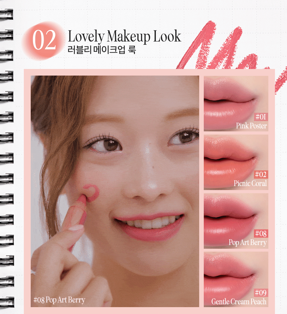| 1호 피마자씨오일,카프릴릭/카프릭트라이글리세라이드, 글리세릴리시놀리에이트,칸데릴라왁스,합성비즈왁스, 미리스틸미리스테이트,티타늄디옥사이드 (CI 77891), 카나우바왁스, 세틸알코올,미리스틸락테이트,적색산화철 (CI 77491),황색산화철 (CI 77492),흑색산화철 (CI 77499),마이카 (CI 77019),탈크,적색202호,향료,토코페롤,적색202호,시어버터,아스코빌팔미테이트 2호 피마자씨오일,카프릴릭/카프릭트라이글리세라이드, 글리세릴리시놀리에이트,칸데릴라왁스,합성비즈왁스, 미리스틸미리스테이트, 카나우바왁스,티타늄디옥사이드 (CI 77891), 세틸알코올,미리스틸락테이트,마이카 (CI 77019),탈크,적색산화철 (CI 77491),황색산화철 (CI 77492),흑색산화철 (CI 77499),황색4호,향료,적색201호,토코페롤,적색202호,시어버터아스코빌팔미테이트 3호 피자마씨오일,카프릴릭/카프릭트라이글리세라이드, 글리세릴리시놀리에이트,칸데릴라왁스,티타늄디옥사이드 (CI 77891),합성비즈왁스, 미리스틸미리스테이트, 카나우바왁스,적색산화철 (CI 77491),황색산화철 (CI 77492),흑색산화철 (CI 77499), 세틸알코올,마이카 (CI 77019),미리스틸락테이트,탈크,적색202호,향료,토코페롤,시어버터,아스코빌팔미테이트 4호 피자마씨오일,카프릴릭/카프릭트라이글리세라이드, 글리세릴리시놀리에이트,칸데릴라왁스,합성비즈왁스, 미리스틸미리스테이트, 카나우바왁스,티타늄디옥사이드 (CI 77891), 세틸알코올,마이카 (CI 77019),미리스틸락테이트,탈크,적색산화철 (CI 77491),황색산화철 (CI 77492),흑색산화철 (CI 77499),향료,토코페롤,적색201호,적색202호,황색4호,시어버터아스코빌팔미테이트 5호 피자마씨오일,카프릴릭/카프릭트라이글리세라이드, 글리세릴리시놀리에이트,칸데릴라왁스,티타늄디옥사이드 (CI 77891),합성비즈왁스, 미리스틸미리스테이트, 카나우바왁스, 세틸알코올,적색산화철 (CI 77491),황색산화철 (CI 77492),흑색산화철 (CI 77499),미리스틸락테이트,마이카 (CI 77019),탈크,적색202호,향료,토코페롤,시어버터,아스코빌팔미테이트 6호 피자마씨오일,카프릴릭/카프릭트라이글리세라이드, 글리세릴리시놀리에이트,칸데릴라왁스,티타늄디옥사이드 (CI 77891),합성비즈왁스, 미리스틸미리스테이트, 카나우바왁스,적색산화철 (CI 77491),황색산화철 (CI 77492),흑색산화철 (CI 77499), 세틸알코올,미리스틸락테이트,적색202호,마이카 (CI 77019),탈크,황색4호,향료,토코페롤,적색104호의(1),적색201호,시어버터,아스코빌팔미테이트 7호 피자마씨오일,카프릴릭/카프릭트라이글리세라이드, 글리세릴리시놀리에이트,칸데릴라왁스,합성비즈왁스, 미리스틸미리스테이트, 카나우바왁스,티타늄디옥사이드 (CI 77891), 세틸알코올,미리스틸락테이트,마이카 (CI 77019),탈크,적색202호,적색산화철 (CI 77491),황색산화철 (CI 77492),흑색산화철 (CI 77499),황색4호,향료,토코페롤,시어버터,아스코빌팔미테이트 8호 피자마씨오일,카프릴릭/카프릭트라이글리세라이드, 글리세릴리시놀리에이트,칸데릴라왁스,합성비즈왁스, 미리스틸미리스테이트, 카나우바왁스,티타늄디옥사이드 (CI 77891), 세틸알코올,미리스틸락테이트,적색226호,망가니즈 바이올렛 (CI 77742),마이카 (CI 77019),탈크,향료,토코페롤,적색산화철 (CI 77491),황색산화철 (CI 77492),흑색산화철 (CI 77499),시어버터,아스코빌팔미테이트 9호 피자마씨오일,카프릴릭/카프릭트라이글리세라이드,티타늄디옥사이드 (CI 77891), 글리세릴리시놀리에이트,칸데릴라왁스,합성비즈왁스, 미리스틸미리스테이트, 카나우바왁스, 세틸알코올,적색산화철 (CI 77491),황색산화철 (CI 77492),흑색산화철 (CI 77499),미리스틸락테이트,적색201호,적색202호,마이카 (CI 77019),탈크,향료,토코페롤,시어버터,아스코빌팔미테이트 10호 피자마씨오일,카프릴릭/카프릭트라이글리세라이드, 글리세릴리시놀리에이트,칸데릴라왁스,티타늄디옥사이드 (CI 77891),합성비즈왁스, 미리스틸미리스테이트,적색산화철 (CI 77491),황색산화철 (CI 77492),흑색산화철 (CI 77499), 카나우바왁스, 세틸알코올,미리스틸락테이트,적색202호,향료,토코페롤,마이카 (CI 77019),시어버터,탈크,아스코빌팔미테이트 11호 피마자씨오일, 글리세릴리시놀리에이트,카프릴릭/카프릭트라이글리세라이드,칸데릴라왁스,티타늄디옥사이드 (CI 77891), 비즈왁스, 미리스틸미리스테이트, 카나우바왁스, 세틸알코올,미리스틸락테이트,황색4호레이크,탈크,적색산화철 (CI 77491),황색산화철 (CI 77492),흑색산화철 (CI 77499),적색201호,향료,적색202호,토코페롤,시어버터,아스코빌팔미테이트 12호 피마자씨오일, 글리세릴리시놀리에이트,카프릴릭/카프릭트라이글리세라이드,칸데릴라왁스,티타늄디옥사이드 (CI 77891), 비즈왁스, 미리스틸미리스테이트, 카나우바왁스,적색201호, 세틸알코올,적색산화철 (CI 77491),황색산화철 (CI 77492),흑색산화철 (CI 77499),미리스틸락테이트,탈크,향료,망가니즈 바이올렛 (CI 77742),적색202호,토코페롤,시어버터,아스코빌팔미테이트 13호 피자마씨오일, 글리세릴리시놀리에이트,카프릴릭/카프릭트라이글리세라이드,칸데릴라왁스, 비즈왁스, 미리스틸미리스테이트, 카나우바왁스,적색104호의(1), 세틸알코올,티타늄디옥사이드 (CI 77891),미리스틸